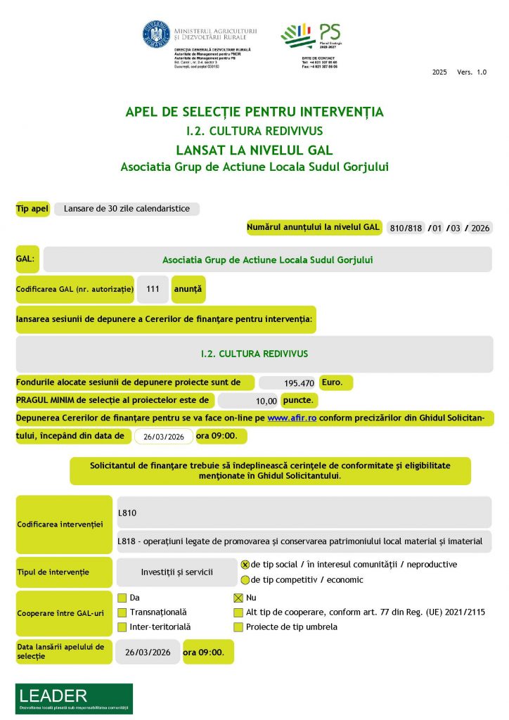 Anunt lansare apel de selectie – I.2. CULTURA REDIVIVUS